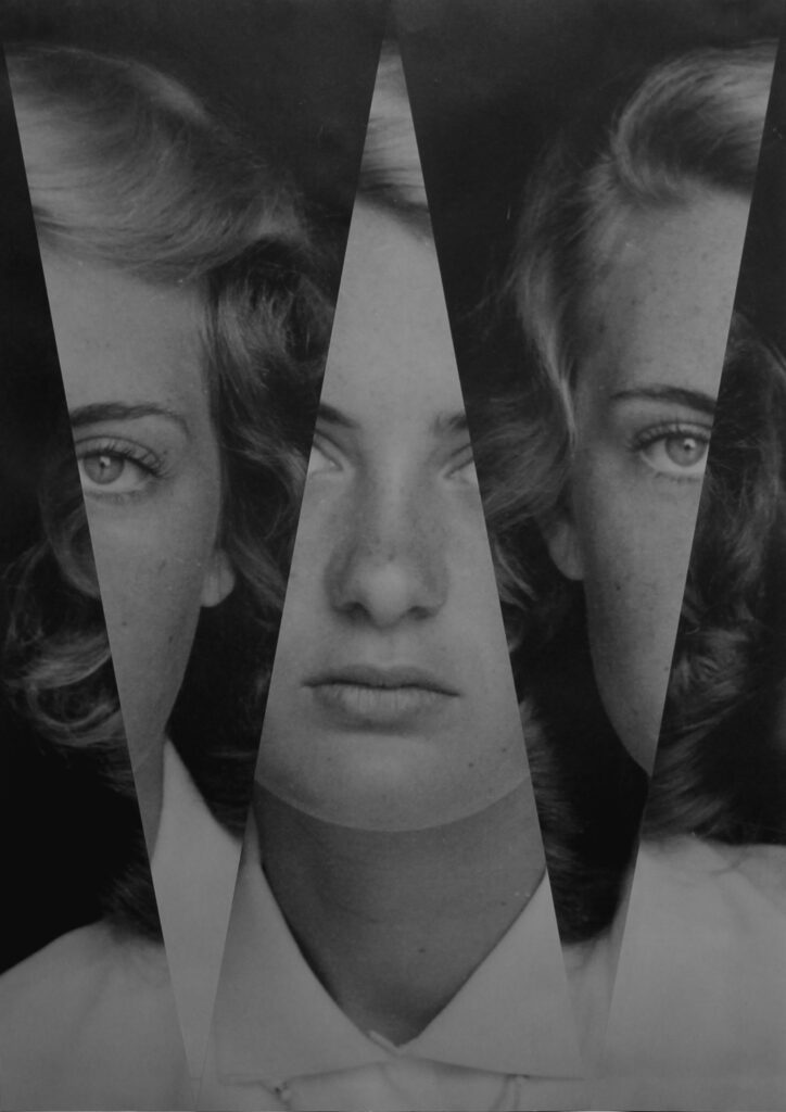 Kensuke Koike, ensuite, transforme des portraits anciens en kaléidoscopes énigmatiques. Avec une précision chirurgicale, il découpe une seule photographie, en réassemble les fragments et les colle, métamorphosant ainsi la figure originelle.